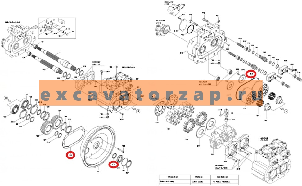 Ремкомплект гидронасоса 31N6-15010 + XJBN-00763 + XJBN-00764 (уплотнения + прокладки) экскаватора HYUNAI R200W7